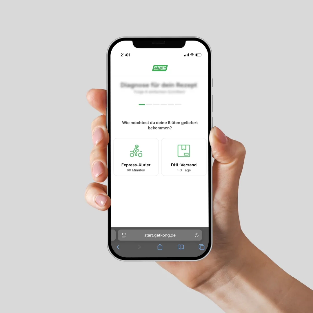 Um eine Behandlung anzufragen, fülle den Online-Fragebogen aus und wähle deinen Produktwunsch aus. Einer unserer Spezialisten wird deine Anfrage prüfen und dir bei Bedarf eine Freigabe ausstellen. Diese erhältst du per Email. Die Produkte werden dann in kürzester Zeit zu dir durch unseren Uber oder DHL Partner geliefert. Natürlich kannst du sie auch vor Ort abholen.